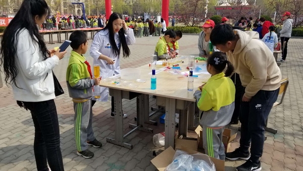 本次的活动分为三个会场:大操场上的田径赛场、篮球场上的 "跳蚤市场" 、楼前的科技体验场。
